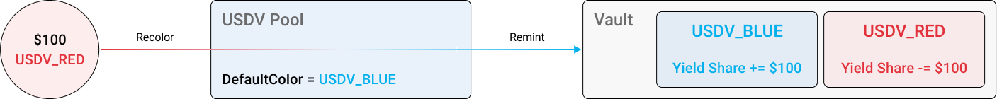 3. The pool (USDV Pool) recolors $100 <mark style="color:red;">**USDV\_RED**</mark> to $100 <mark style="color:blue;">**USDV\_BLUE**</mark>.